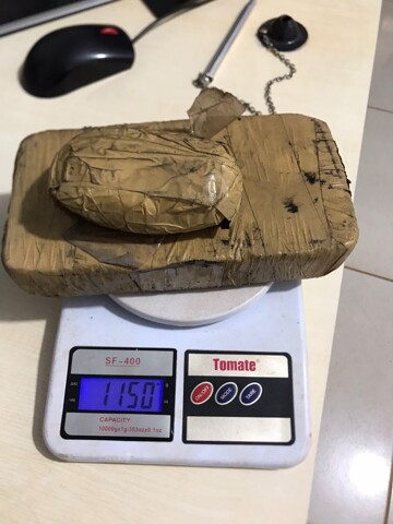 As buscas continuaram, e no local onde a dupla foi abordada, os policiais encontraram escondido no pé de uma árvore em meio ao matagal, cerca de 1 Kg de cocaína.