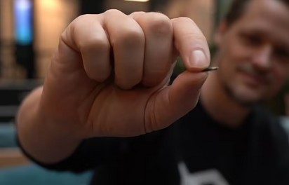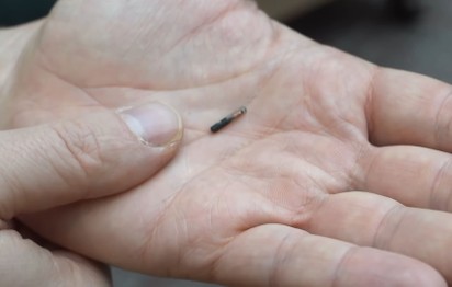 O chip tem o tamanho de um grão de arroz implantado entre o indicador e o polegar